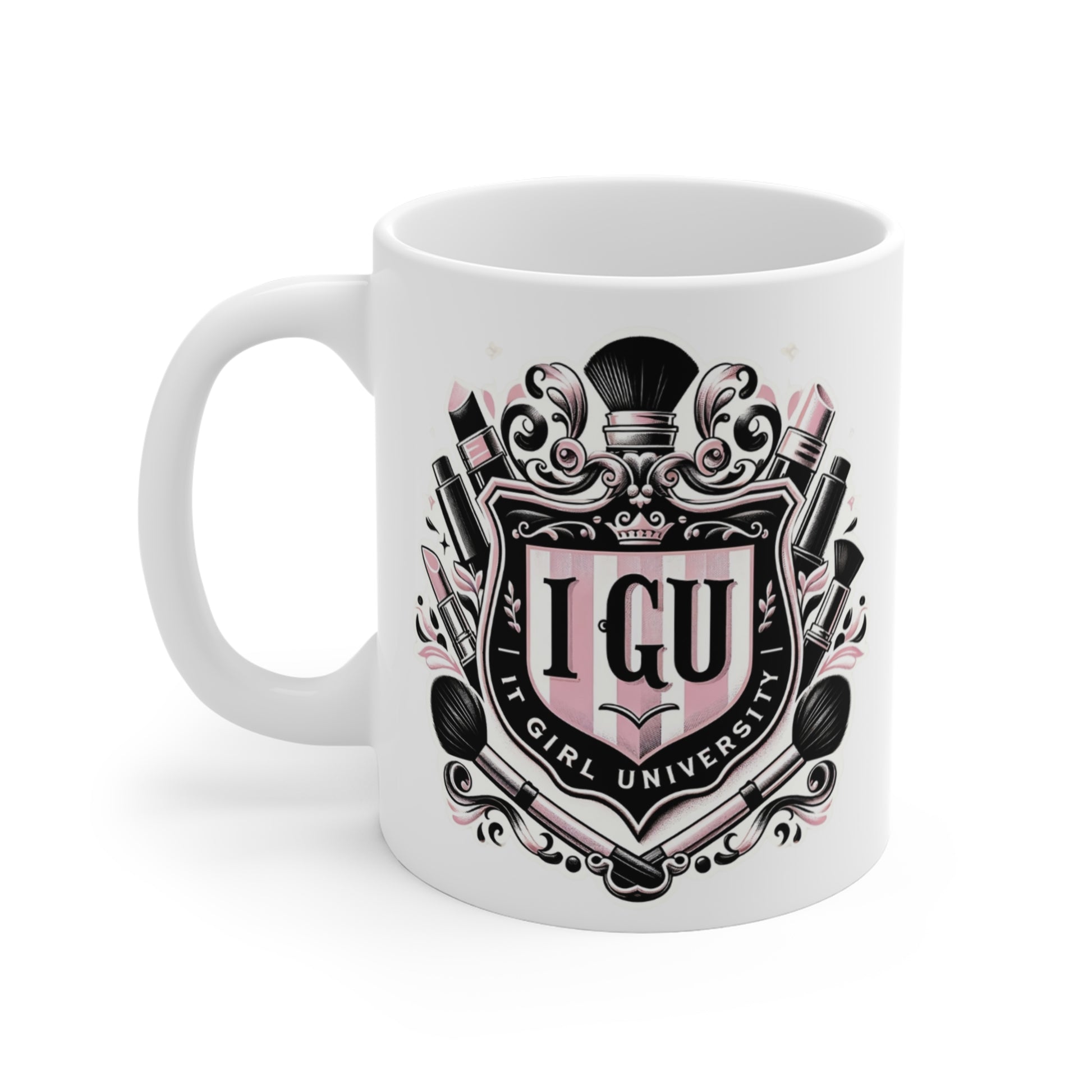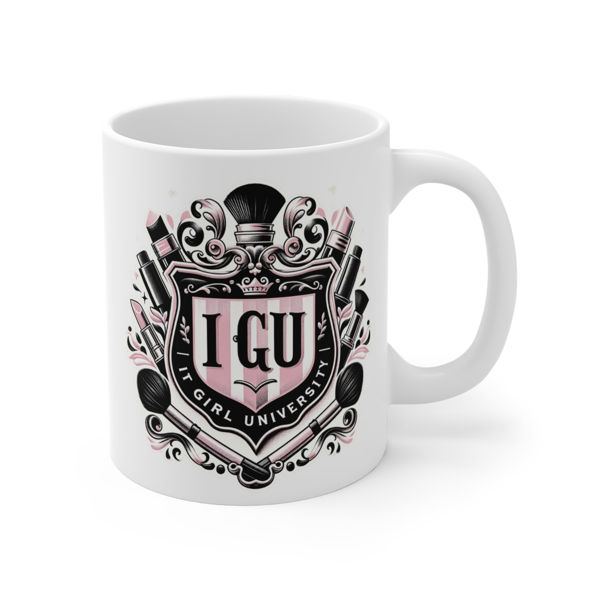 Elevate your morning ritual with the exclusive It Girl University Coffee Mug. This isn't just a mug; it's a daily reminder of your journey towards becoming the ultimate It Girl. Featuring the classic IGU logo set against a chic background, this mug is designed for the sophisticated woman ready to conquer her day with elegance and confidence.